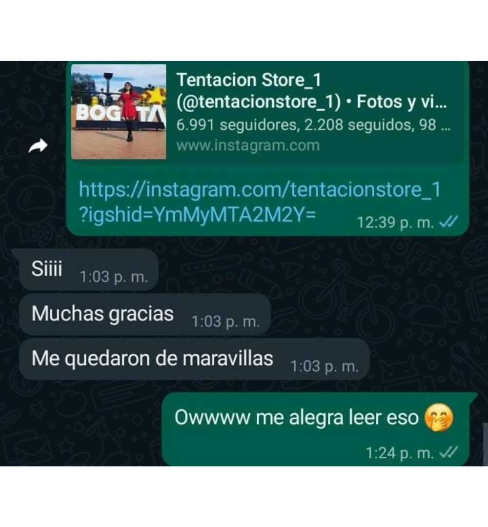 ¡Hola! Somos el equipo detrás de Tentación Store, un pequeña empresa familiar en el corazón de Bogotá.